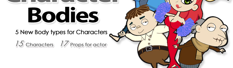 This pack provides 5 different cartoon body types. They are Chubby, Plus Size , Body Builder , Athletic , Elderly. |