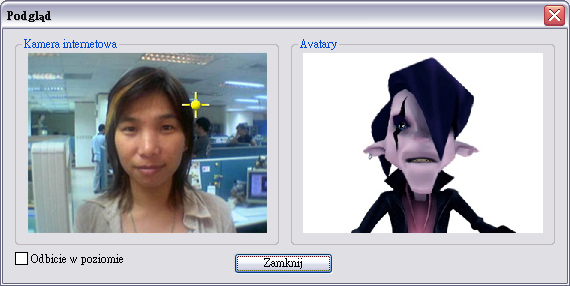 Kliknij przycisk Podgląd, aby wyświetlić okno dialogowe podglądu. Okienka Kamera internetowa i Avatary zostaną wyświetlone jednocześnie.