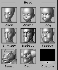 After you create a head for the actor, you may adjust the features on the face individually. However, you can also apply one of the built in Full Face Morph templates to automatically change your actors look in one click.
