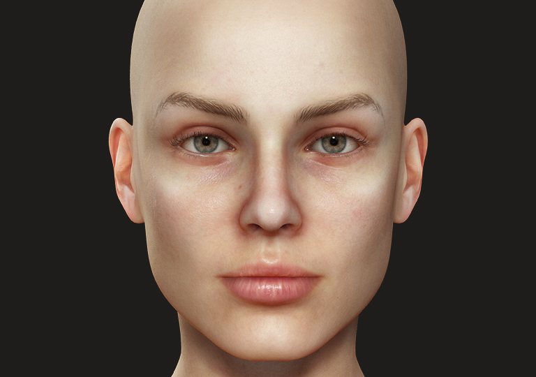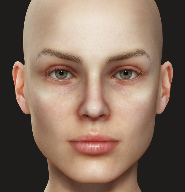 Eyebrow tool is designed for realism with hair and shadow layers. Only one colored eyebrow image is needed and the other side is automatically projected. You can apply an alpha range map for the shape of the shadows and then adjust the colors. Adjustments in the Transform section allows you to move the eyebrows to the ideal position. Import a scanned character, and use Replace to cover the original eyebrows with this tool.