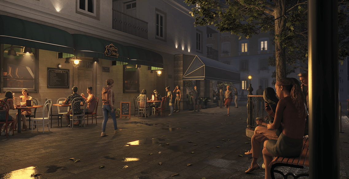 Generate realistic masses with detailed facial expressions, accessories, and diverse animation styles using iClone. Seamlessly batch transfer these assets to 3ds Max in the same placement for final rendering. iClone Crowd Sim