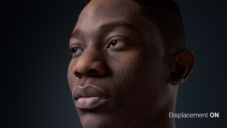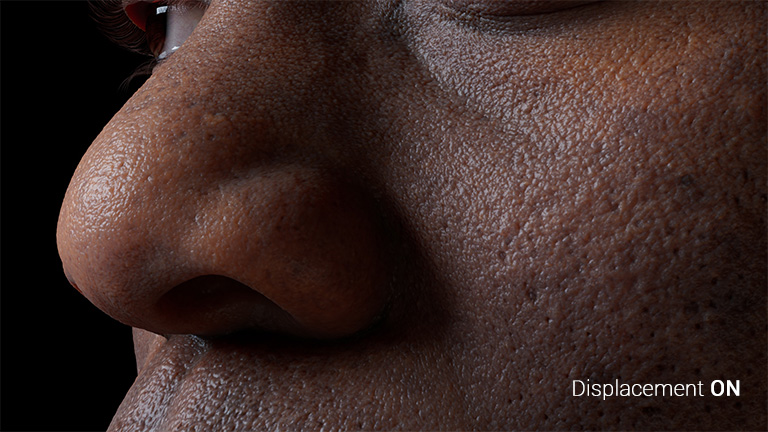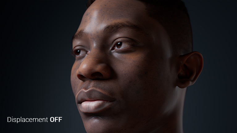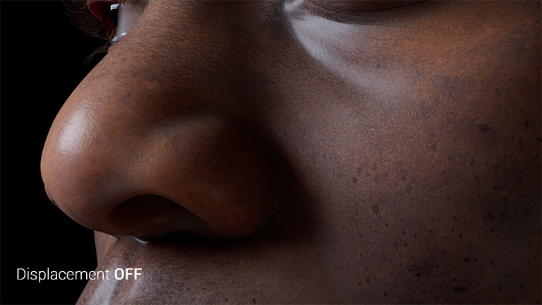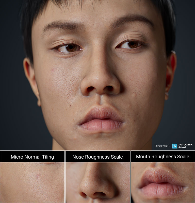 The CC Digital Human Skin Shader provides adjustable subsurface scattering, roughness, specularity, and micro-normal properties for achieving lifelike results. These parameters can be finely tuned for regional adjustments designated by 4-channel RGBA color masking.