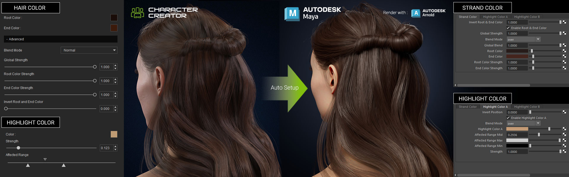 Fast-track your Maya workflow with Reallusion Auto Setup. From designing characters and animating facial expressions to deploying crowd simulations, you can now bypass tedious material graph construction and skeletal rigging. Auto Setup also enables realistic Arnold renders for high-definition characters from iClone, and Character Creator, and ActorCore.