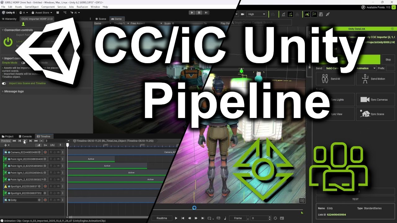 The Auto Setup tool automates material creation for Character Creator and iClone characters in Unity, giving designers complete control over the Reallusion Digital Human Shader in the Unity High Definition Render Pipeline (HDRP). The Data Link feature enables quick synchronization through direct asset import into a Unity scene, with automatic timeline setup.