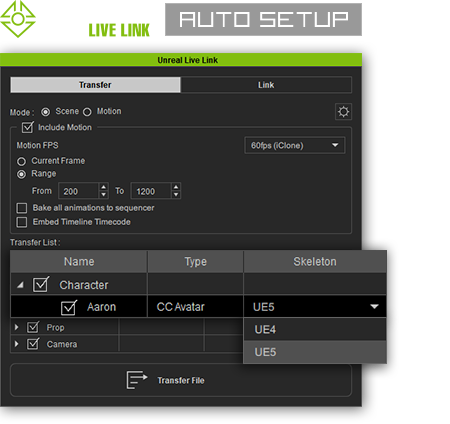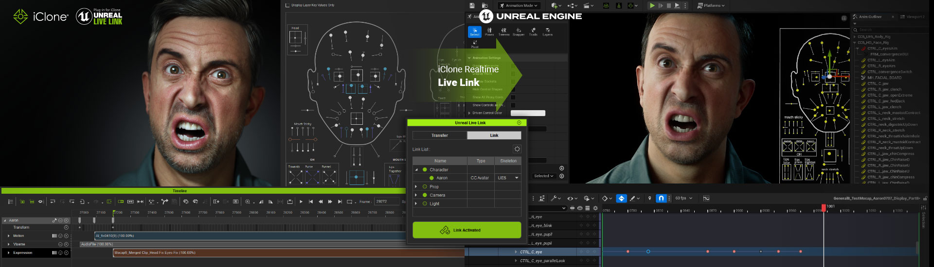 The iClone Unreal Live Link Plug-in seamlessly connects iClone with Unreal Engine for real-time character, light, camera, and animation control. It eliminates the need for FBX import/export and automatically sets up character shaders and skeletons. Combined with iClone’s easy tools, it enables fast creation of digital humans, including facial expressions and talking animations using intuitive puppeteering and multi-device mocap.