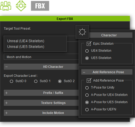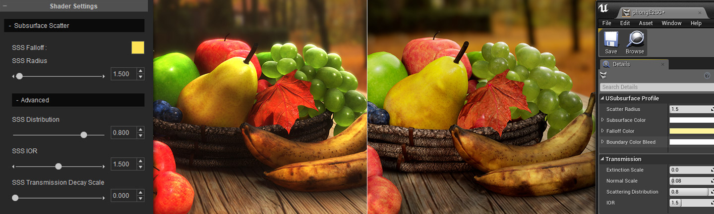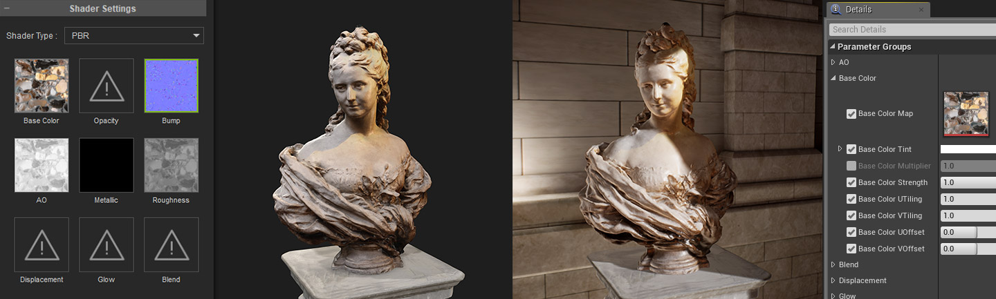 Automatically transfer PBR materials, including Roughness and Metallic, from CC and iClone to Unreal Engine. A library of SSS effects is available for props, allowing detailed shader adjustments while preserving the same SSS shader properties when sending props to Unreal.