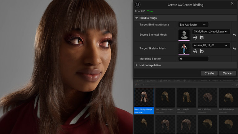 Looking to give your CC characters flawless Metahuman Groom Hair in no time? Simply find a Groom Asset that fits your character while using Control Rig Blueprint or Live Link, then use Create CC Groom Binding to instantly snap the hair into place. Achieve limitless styles anytime! Tutorial