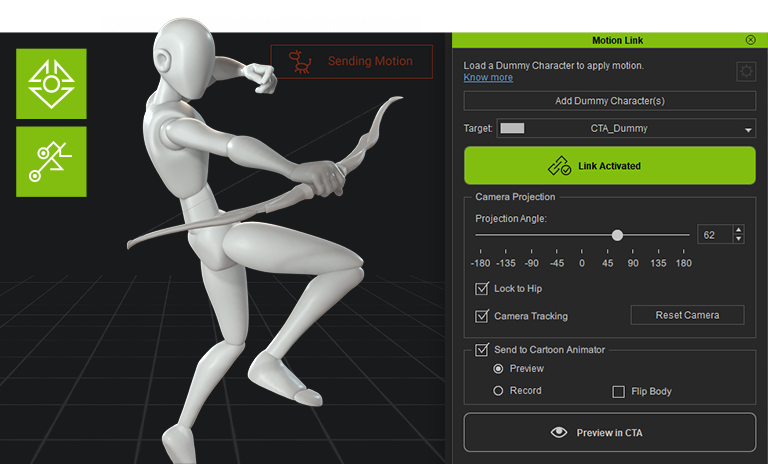 One plugin that links two powerful animation tools, Motion Link will change the way you create animations. It seamlessly synchronizes motions to iClone 3D animation and CTA's 2D characters so you can easily produce high-quality animations while still maintaining full control over the process.