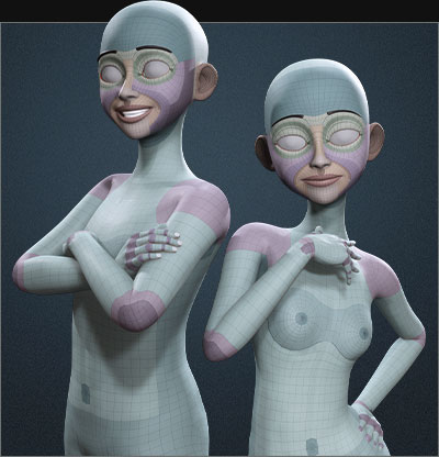 Male and female stylized character designs, featuring simplified body curves and toon-style eyes and teeth, providing the perfect starting point for a cohesive look.