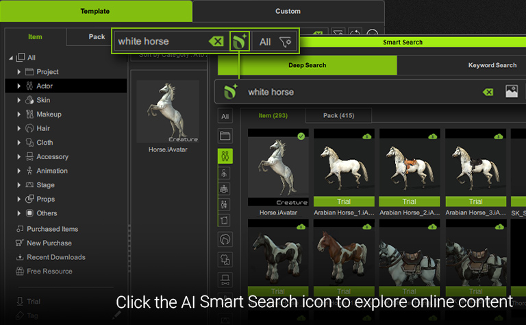 Use Smart Search in the Smart Content Manager to find and download trial content from the Reallusion Marketplace. When you're ready, add it to your cart and remove the watermark with a quick purchase. Online Manual