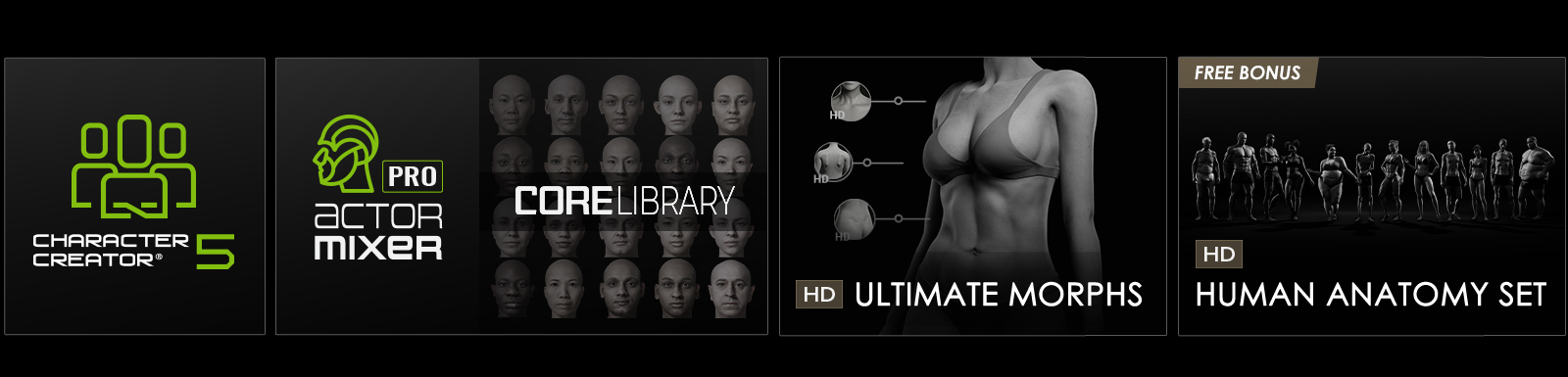 Harness the full power of Character Creator 5, the centerpiece of next-level character creation. Enhance your workflow with ActorMIXER PRO and 40+ premium scanned assets and HD skins. Refine every detail with the HD Ultimate Morphs Pack and receive the HD Human Anatomy Set (value $990) as an exclusive bonus.