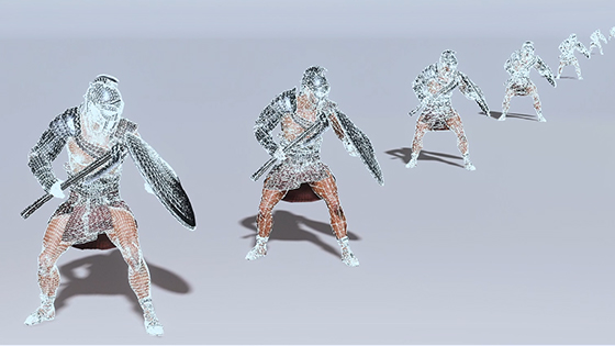 • In this sample, a CC warrior is made with 7 levels of detail and rendered in Unity.
