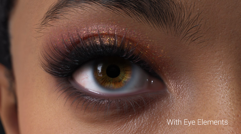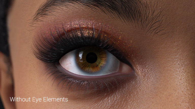 Access a built-in HD eye library with iris color and radial streak variations. Fine-tune the look using parametric sliders to adjust the iris, pupil, limbus, and sclera.