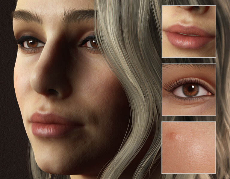 As a fully-functional 3D character, Susan is perfect for facial mocap, puppetry, lip sync, and body animation. We licensed Susan's original scan model from TexturingXYZ and projected it onto a CC3+ character using Reallusion's revolutionary Mesh-to-CC Technology, resulting in a stunningly realistic virtual character.