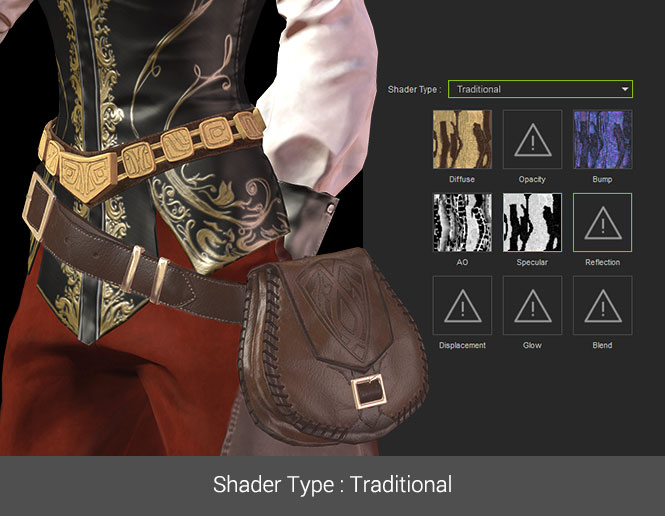 Character Creator with visuals for industry standard PBR shaders allows users to import PBR textures made with 3D paint tools like Substance Painter, 3D Coat, or