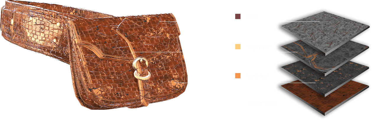 Add more realism to your leather with edge wear, wrinkles, folds, scratches, and grit.
