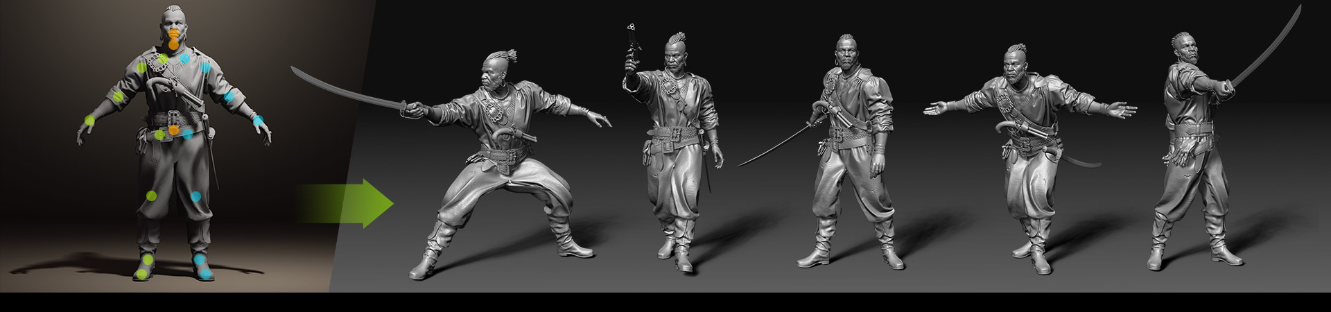 By leveraging robust character foundation and seamless GoZ round-trip features, artists can swiftly transform intricate sculptures into animated characters. Effortlessly transfer ZBrush assets, including morphs, textures, clothing, hair and accessories, to Character Creator with a single click. Animation becomes a dynamic process utilizing diverse motion libraries, HumanIK editing, or motion capture techniques for realistic, action-packed renders.