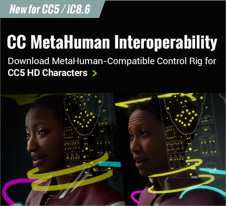 在虚幻引擎中以栩栩如生的精度为 CC 角色制作动画。使用熟悉的 MetaHuman Control Rig,通过活化全身动作和面部表情,迅速完成后期制作。通用的 CC 标准为虚幻开发人员提供了前所未有的角色自定义灵活性。庞大的内容生态系统使其能够部署动画数字替身、奇思妙想的卡通、双足生物和人群模拟。无论您是经验丰富的专业人士还是充满热情的爱好者,CC Control Rig 都能助您实现创意愿景。 CC MetaHuman 互操作性 >