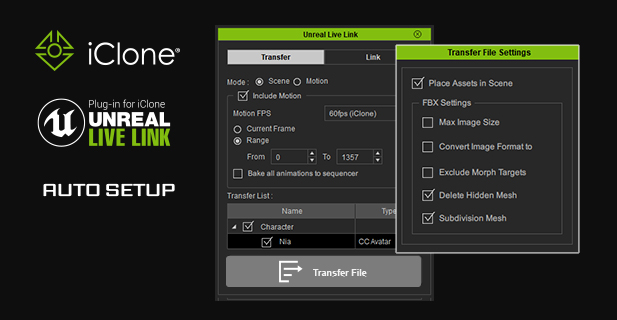 iClone Unreal Live Link 可以直接将动画化的CC、Actorcore或AccuRIG角色传输到虚幻引擎。