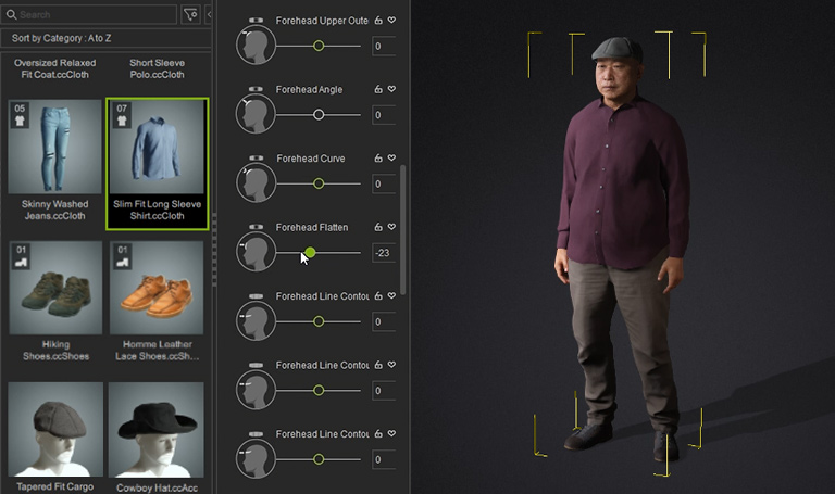绑定的 CC3+ 拓扑支持全身形变、服装和皮肤纹理。可扩展用于高清 3D 角色和快速人群模拟。