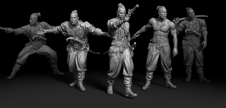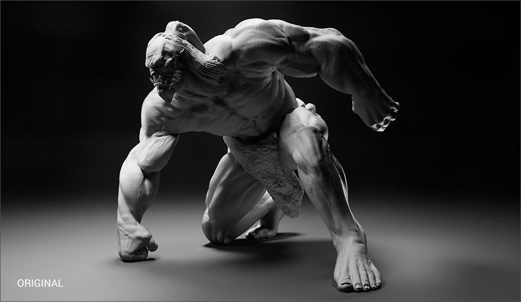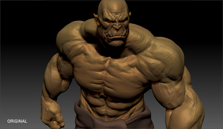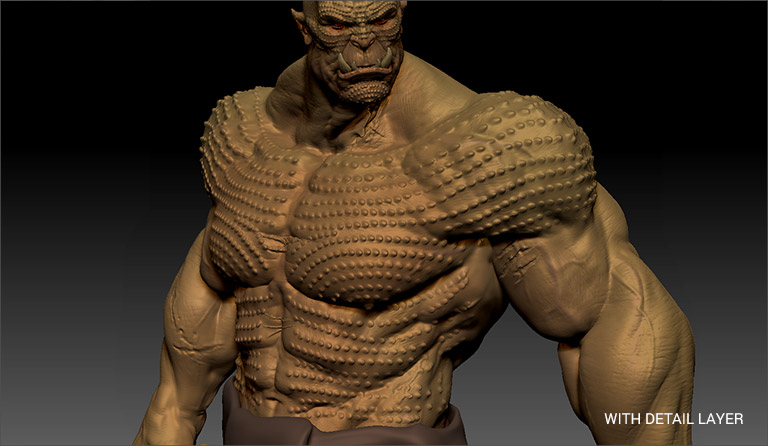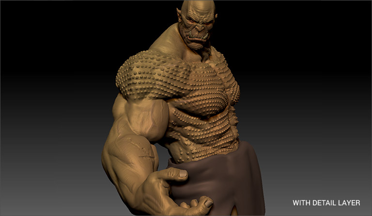 利用细节层来修饰角色。这些分层效果可以应用于 ZBrush Pose Tools 管理的所有姿势,提供了一种多功能且高效的方式来增强角色的外观。