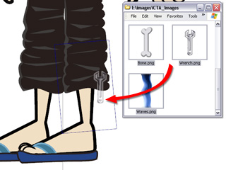 When you select a character and switch to the Character Composer mode, then you can drag and drop any props onto any body parts. CrazyTalk Animator will automatically attach the prop to the body part.