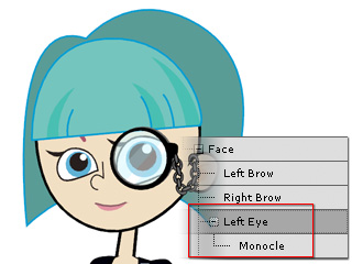 When you select a character and switch to the Character Composer mode, then you can drag and drop any props onto any body parts. CrazyTalk Animator will automatically attach the prop to the body part.