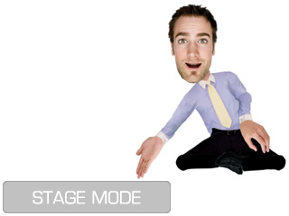 The Stage/Composer On-screen Display may show the mode name at the bottom of the working area to indicate if you are in the Stage or Composer mode.