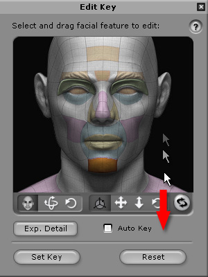 2. Pick Head/Camera, Eyes or Shoulders in the Key Editor dialog box, drag on the sample image to adjust the model, and click Set Key to add a key into the timeline. Check the Auto Key box to update the key automatically instead of pressing Set Key manually.