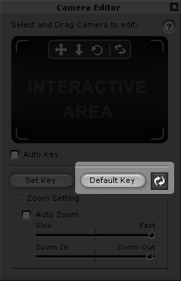 There are two features in the Camera Editor panel, the Resume and Default Key buttons, which help you a lot when you want to retrieve the status of the camera.