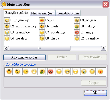Selecione uma emoção na biblioteca de Conteúdo favorito, clique no botão Limpar e isto removerá a emoção da biblioteca. Esta operação não exclui o conteúdo mas o retira da área de conteúdo favorito.