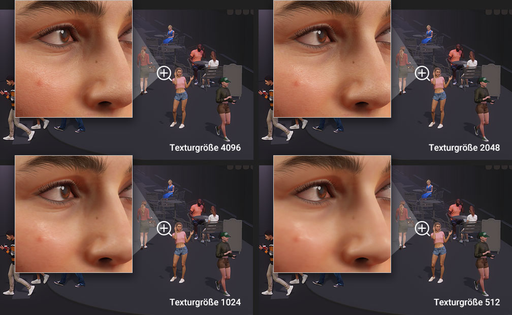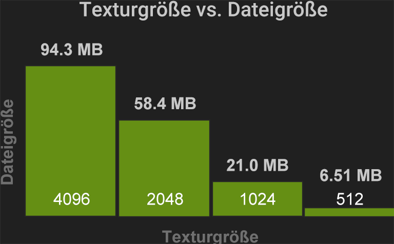 | Texturgröße | 4096 Multi-Kanäle für 4 Körpermaterialien | 4096 | 1024 | 512 | |