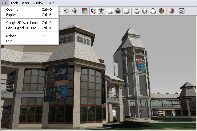 The File menu contains several items mapping to the file handlers section in the tool bar. You may open, export and reload 3DS, OBJ, VNS or SKP files through the sub-items in this menu, save the SKP files downloaded from Google 3D Warehouse and Launch SketchUp to edit the SKP files downloaded. You may also click Exit to shut down 3DXchange.