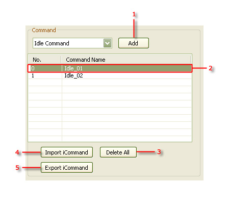 Command/ClipSeq Interface You can add multiple commands in the Command Section, first select the command type from the drop-down list, then press the Add button to add commands. Double click to rename the target command name, press delete button to delete command, or export command as a library for future reuse.