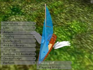 The "Taking Off" is applied to the sailing ship. The "Flapping Wings" is applied to the wing.