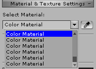 For compound models or models with multiple textures or material settings, it is tedious to search for the target material through the Material drop-down list. Though You can use the up/down arrow keys to browse through all materials if you wish. Applying multiple texture to the target mesh can make a simple model look ultra-realistic.