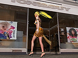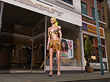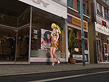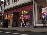 Example: A lady walks down the street while the camera looks at her.