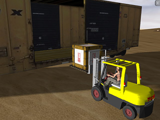 The train moves away with the crate