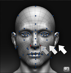 Nachdem Sie einen Punkt gewählt haben wird dieser Rot und ermöglicht es Ihnen die Gesichtsmerkamle durch ziehen des Punktes zu verändern.
