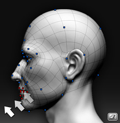 Wählen Sie die blauen Punkte, um nahezu jeden Bereich des Gesichts zu bewegen: Profil rechts, Frontalansicht, Profil links.