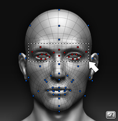 Einen umfassenden detaillierten Gesichtsausdruck können Sie erstellen, indem Sie die Detailsteuerung im Kopf/Gesicht Menü starten.