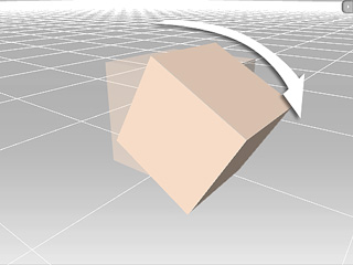 Wechseln Sie zu Frame 30 und drehen Sie den Block entlang der Y-Achse. Klicken Sie im Frame 40 auf Auf Originalkey zurücksetzen. Ihre Drehungsanimation ist jetzt fertig erstellt.