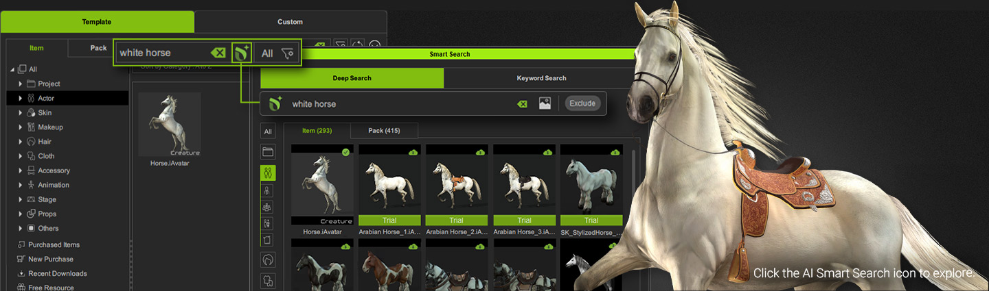 Use Smart Search in the Smart Content Manager to find and download trial content from the Reallusion Marketplace. When you're ready, add it to your cart and remove the watermark with a quick purchase. Online Manual