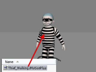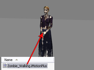 Drag and drop the saved MotionPlus file onto the new character.