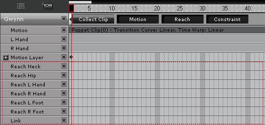 Open the Collect Clip track of the character and select a range.
