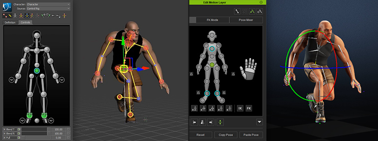 - Motions in industry-standard formats can be quickly applied onto the characters via simple drag and drop.