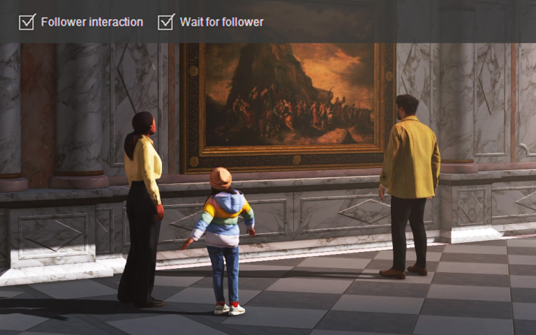 iClone "Turn to Stop" and "Multiple Entry" functionality simulate natural human behavior in approaching and engaging with a target prop. This includes slowing to a stop, making a turn, and approaching with measured pace, distance, and orientation. MD props take care of the rest with smooth and natural interactive motions that are tailored to the gender and characteristics of the engaging actor.