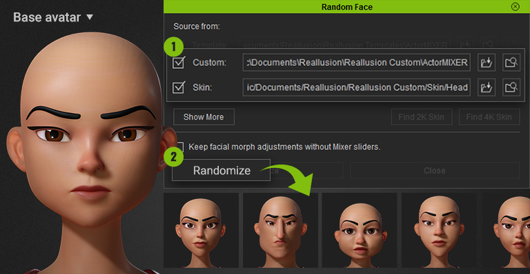 透過隨機化臉部色板來超越模板,在生成變體的同時忠於您選擇的人物風格。