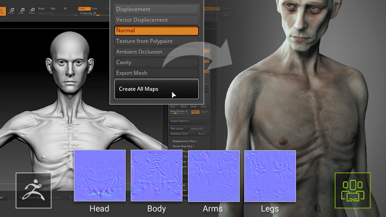 UDIM UV 佈局可在 ZBrush 中實現一次性多紋理烘焙。
