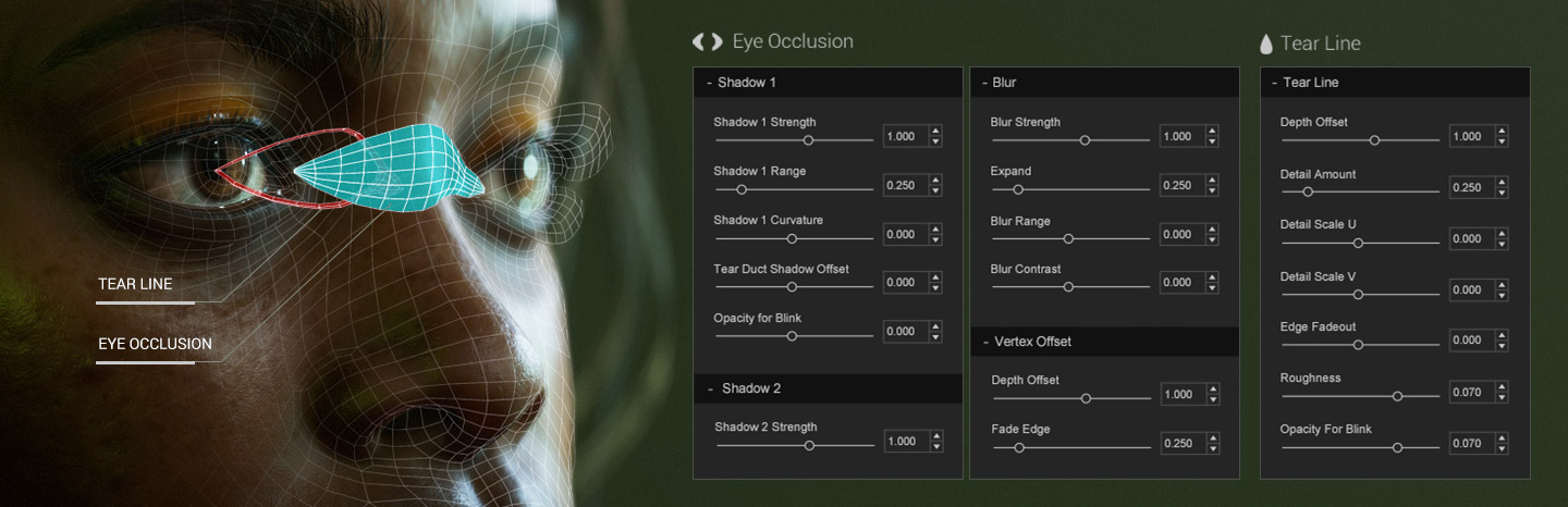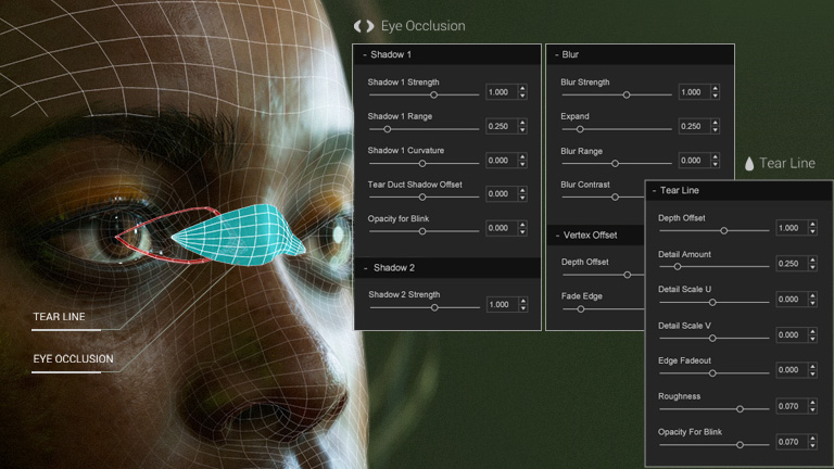 淚線和閉塞網格為眼睛帶來額外的深度和生命力。
